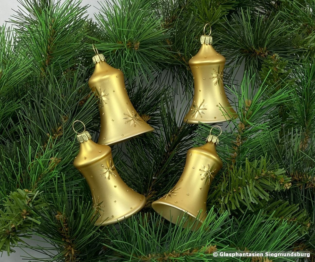 Produktinformationen "Glocken 6 cm 4er Set Gold mit Goldstern dekoriert Glöckchen haben einen echten Klöppel"