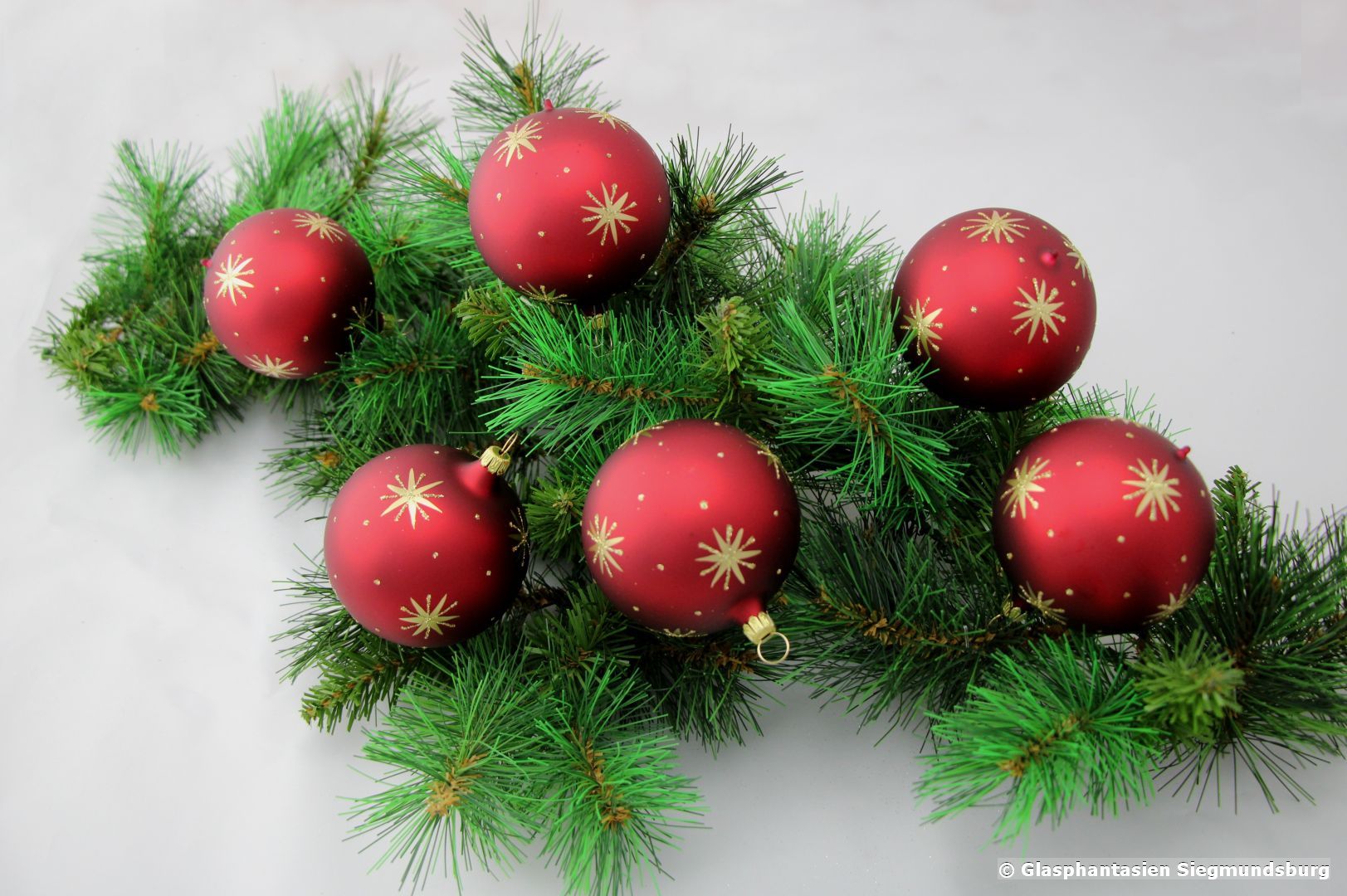 Produktinformationen "Kugeln 6 cm 6er Set Dunkelrot mit Goldstern Christbaum-Kugeln, Durchmesser ca. 6 cm"