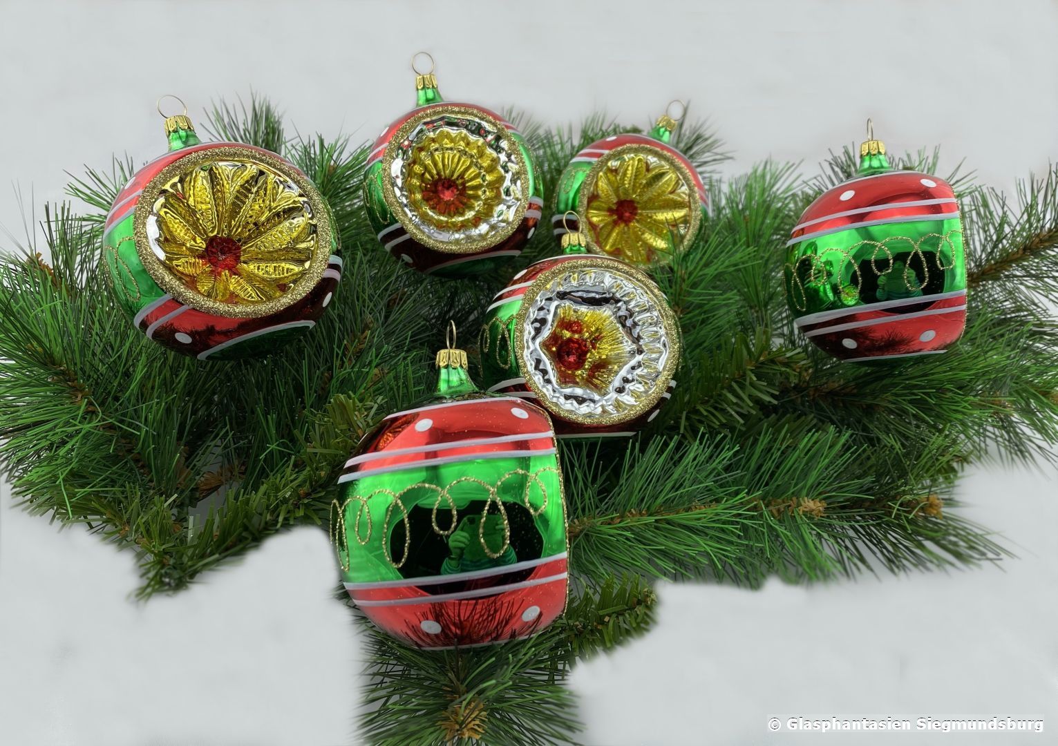 Nostalgisches Reflexkugelsortiment Grün-Rot-Gold dekoriert